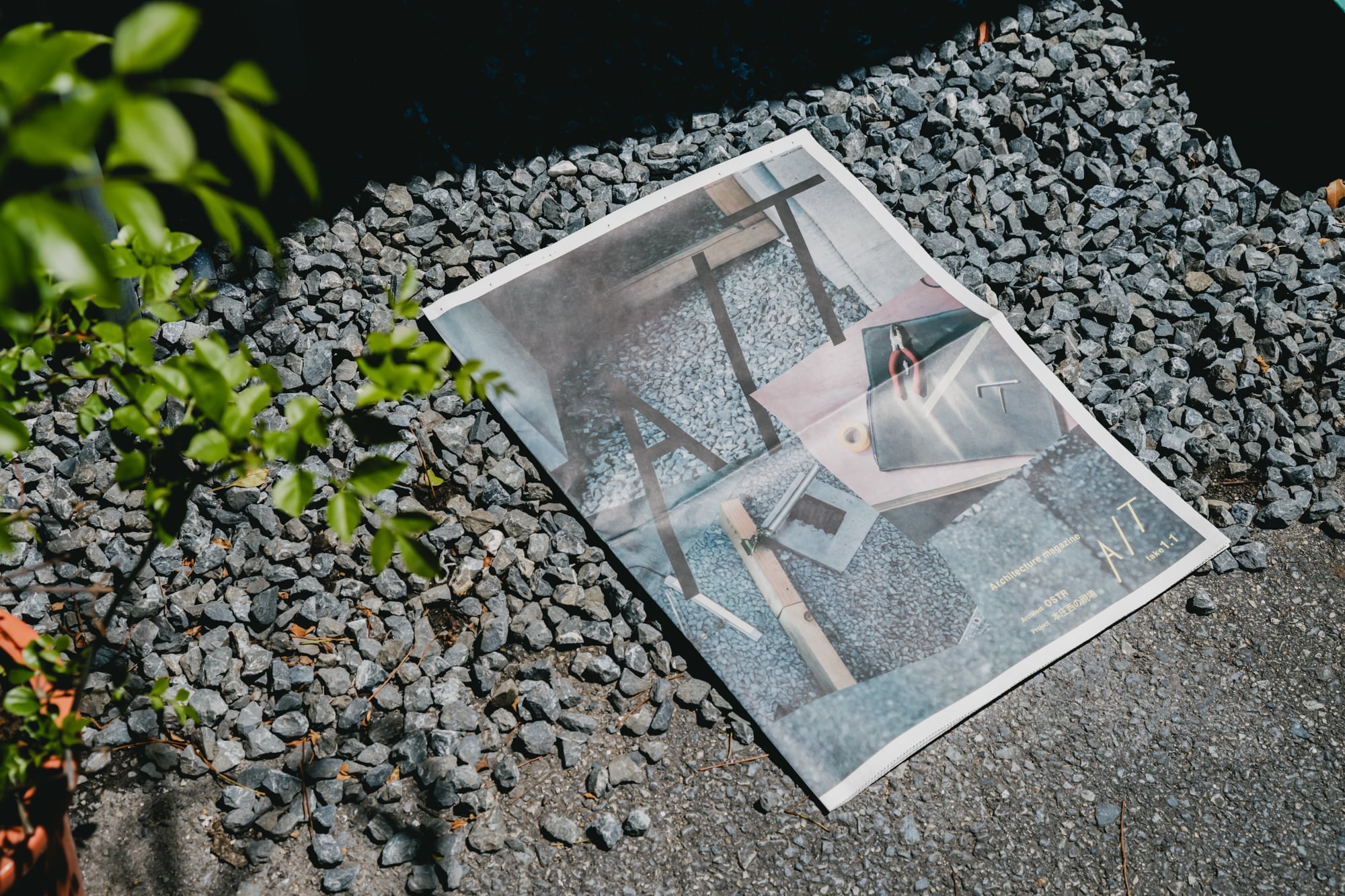 建築雑誌と作品集と写真集。 「A/T」は、そのどれでもあってどれでもないメディアとして立ち上げた。紹介するのは、空間や場。あえて建築と言わないのは、床や壁に囲まれた気積としての、形を持たないものを捉えたいと考えたからだ。 「空間設計」と言うこともあるが、空間を直接つくることはできない。床や壁が立ち上がって、その後に現れる気積こそが空間であって、「空」や「間」という漢字の構成はまさにそのことを示している。 空間自体が形を持たないのなら、そこに置かれた家具や散らかった文房具も、床や壁と同じように空間を形づくる輪郭線になる。建築の形としてではなく、そこに現れる場を、写真や文章を通して捉えてみる。立ち上がった建築の形が振る舞い方に影響するように、取り上げる空間に合わせてメディアの形式を変え、メディアの形式が写真やテキストに影響していく。 ------------------------------------ Architecture magazine A/T take1-1 Architect / OSTR Project / 本庄西の現場 発行 A/T 大阪府大阪市北区本庄西1-6-25施行地区3F 編集 平田 悠 大竹 央祐 写真 大竹 央祐 スケッチ/図面 太田 翔 装丁 増田 一真 寄稿文 岡 絵理子 舩橋 耕太郎 板坂 留五 山口 陽登 武井 良祐 ------------------------------------ 新聞紙と同じ新聞輪転機を用いた印刷工程で制作。 【仕様】 ブランケット版(406.5×546) 新聞輪転印刷20P(カラー16P/モノクロ4P)