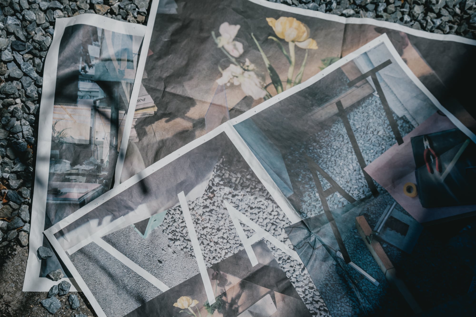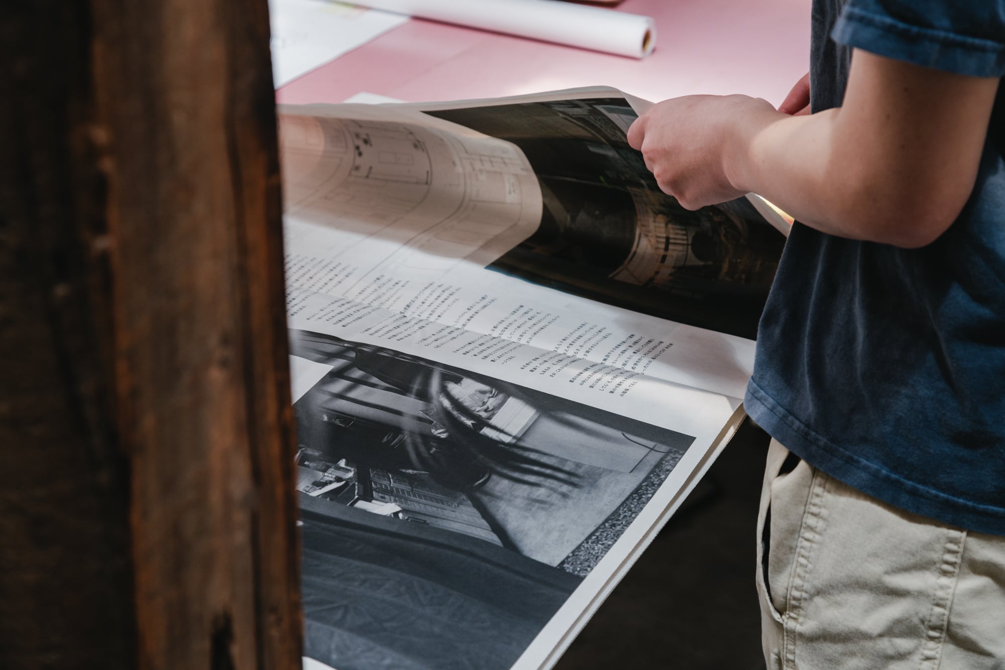 空間自体が形を持たないのなら、そこに置かれた家具や散らかった文房具も、床や壁と同じように空間を形づくる輪郭線になる。建築の形としてではなく、そこに現れる場を、写真や文章を通して捉えてみる。立ち上がった建築の形が振る舞い方に影響するように、取り上げる空間に合わせてメディアの形式を変え、メディアの形式が写真やテキストに影響していく。
